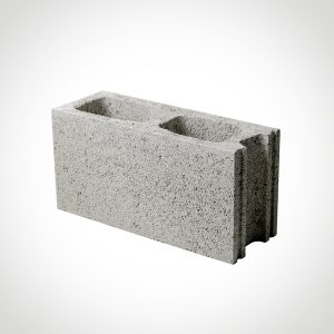 Hydraulic concrete block made with cement, water, limestone aggregate and water reducing additive. For use in 8” (0.20 m) thick masonry wall. With capacity to support structural loads. Also available with side texture.